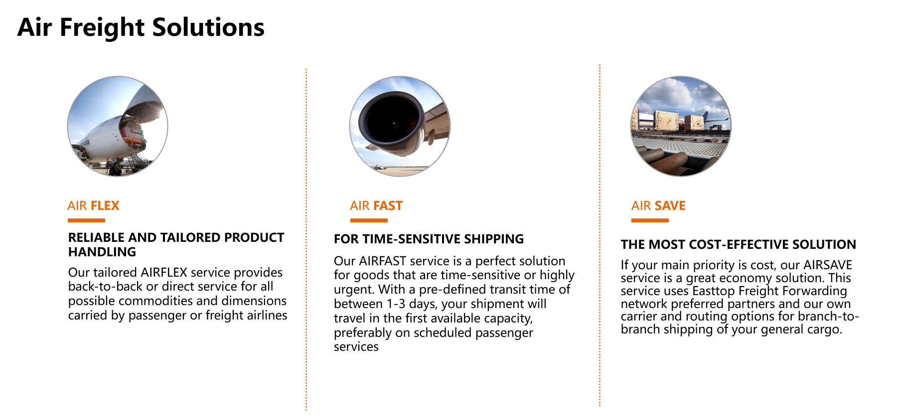 Shenzhen Easttop International Logistics Co.,Ltd. was established in 2021, it is a subsidiary of Shenzhen Easttop Supply Chain Management Co., Ltd. (stock code: 002889). Headquartered in Shenzhen and has branches in Hong Kong. At present, the main business scope includes international commercial flights, international charter flights, international shipping and oversea warehouse. Covering major airports and various truck transfer points in Europe, America, Asia and Latin America. Easttop International has close business relations with customers in more than 100 countries and regions around the world. With multiple international air routes, we are able to provide door to door, door to port, port to port of diverse services. Credit mechanism has been established after long time business cooperation among our counterparts. Adhering to the corporate philosophy of "responsibility, cooperation, service, gratitude", the company is committed to developing into a global logistics supply chain company with Chinese characteristics, serving customers at home and abroad in an efficient and convenient way.